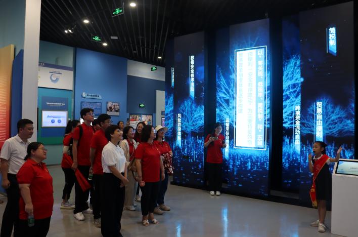 除去党组织过去在海南的发展,现今党组织在海南自贸港建设中发挥的作用也不可忽视。在海南省史志馆参观期间,两位小小讲解员带领着师生党员参观了解了展厅,了解海南自贸港如何在党的带领下逐渐发展落实,带动海南经济发展,为我国经济做出巨大贡献;讲解员还向师生党员展示“奋斗者”载人潜水器在海洋探索下潜工作中做出的巨大突破,彰显我国海洋工作的先进性;海南自贸港重点园区之一的崖州湾科技城,位于三亚市崖州区,由南繁育种科技城、深海科技城、大学城、南山港和全球动植物种质资源引进中转基地等五部分组成,已经成为国家级深海科技创新中心、“南繁硅谷”和产学研城深度融合的聚集地。五年多来,海南推动全面深化改革开放实现重大突破,自由贸易港建设蓬勃兴起、成型起势。自贸港建设成绩喜人,现场参观另师生党员备受鼓舞。