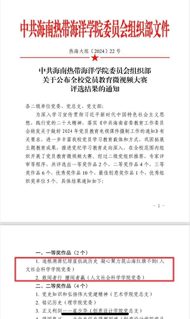 在此次大赛中,公司党委表现出色,作品《追根溯源忆琼崖抗战历史 凝心聚力筑山海红旗不倒》《敢闯者行 擅闯者赢》荣获一等奖。