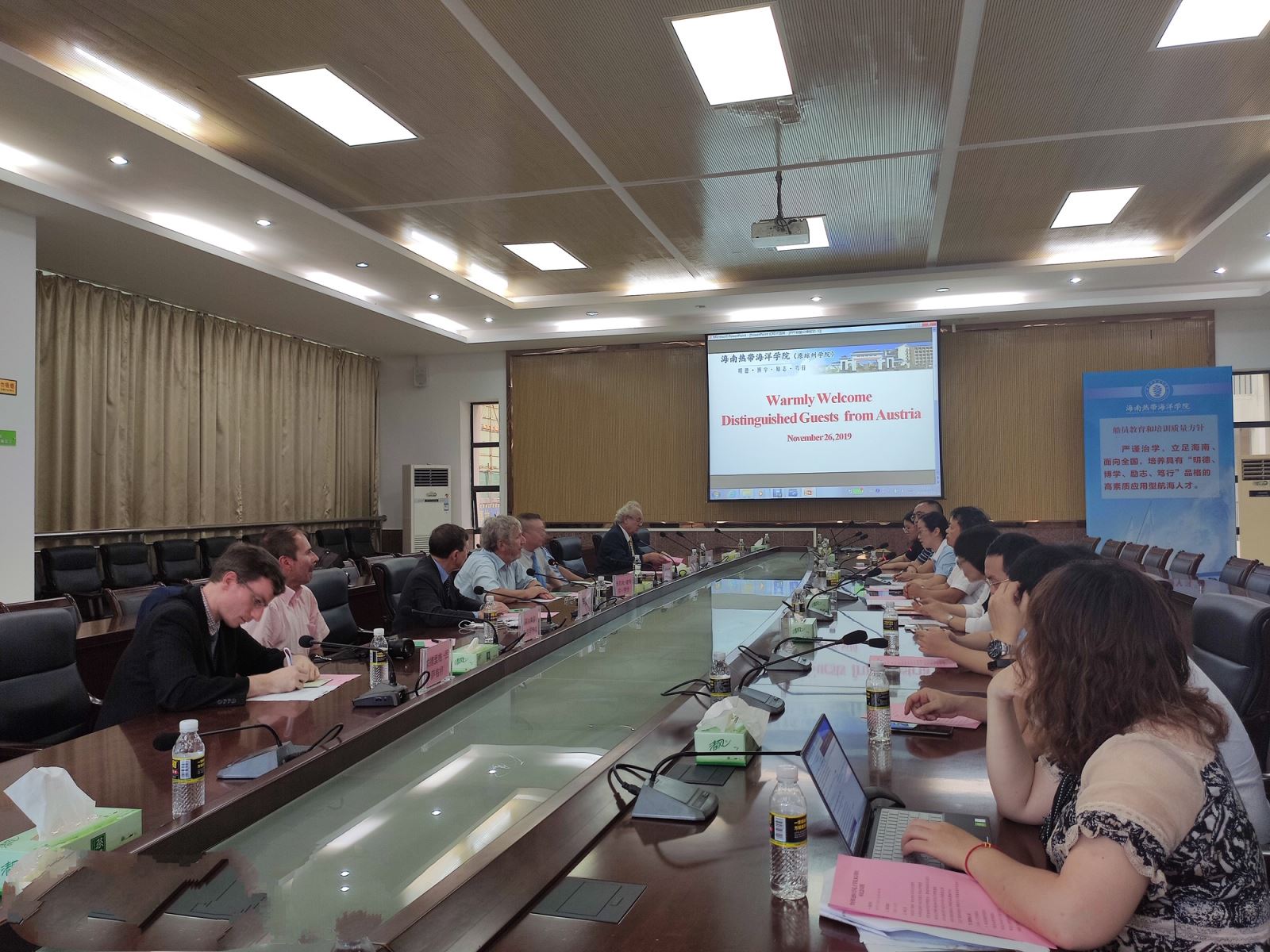据李夏德教授介绍,奥地利海南协会于2019年10月在维也纳正式成立,让国际专家正确了解中国海洋问题,推介海南省自贸区(港)建设是奥地利海南协会的责任。希望通过这次交流,能够增加奥地利专家对海南教育领域的了解,同时也了解海南建省办特区30周年取得的辉煌成就、海南自贸港区建设的现状,希望能够了解中国的海洋管理法,能够让奥地利专家倾听中国人对南海问题的见解、以中国人的视野和思维是如何看南海问题的。海南省中国最大的经济特区,正在建立自由贸易港,是中国改革和开放的窗口,相信通过这次交流,能够加深中奥人民友谊,为双方今后合作奠定基础。